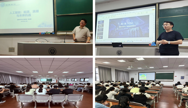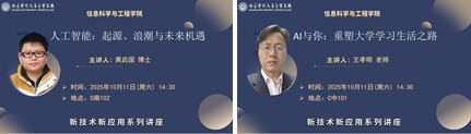 为激发大一同学的专业学习热情,帮助同学们系统梳理人工智能的发展脉络,明晰未来竞争力的构建路径,2025年10月11日下午,信息学院在C南102和C中101分别举办了两场专题讲座。黄启国博士主讲的“人工智能:起源、浪潮与未来机遇”讲座带领同学们深入探索人工智能的演进历程与时代机遇;王孝明老师主讲的“重塑大学学习、生活未来竞争力”讲座则聚焦大学生的学习与成长,启发同学们在数字化浪潮中主动塑造自身优势。两场讲座现场座无虚席,反响热烈,营造出浓厚的学习与思辨氛围。