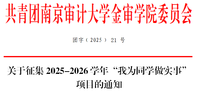 各级学生会组织至少申报1项“我为同学做实事”项目作为校级项目立项,并填写《2025-2026学年南京审计大学金审学院“我为同学做实事”项目申报表》(见附件1)。