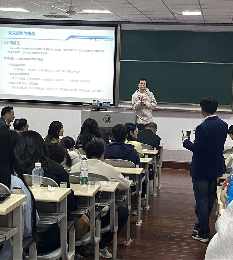 谈及未来趋势,芮立副教授重点介绍了“AI+零信任”的破局路径。他引用Gartner报告指出,依赖杀毒软件与防火墙的“拼凑式防御”已失效,而AI驱动的零信任体系可通过三大技术实现升级:一是自适应访问控制,实时分析用户行为、设备状态等信息调整权限;二是智能威胁检测与响应,建立行为基线识别数据外泄等异常;三是零知识证明(ZKP)技术,在金融、医疗等领域实现数据真实性验证与原始信息保护的兼顾。
