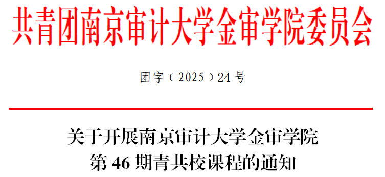 关于开展南京审计大学金审学院第46期青共校课程的通知