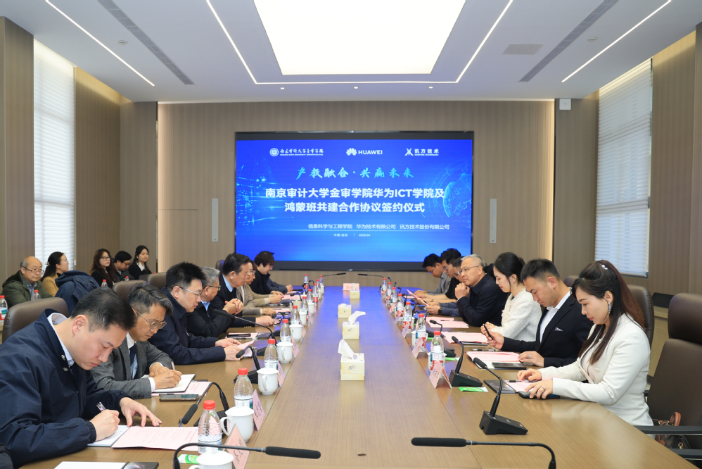 4月1日下午,南京审计大学金审学院鸿蒙创新班共建合作协议签约仪式在学校图书馆一楼会议室隆重举行。南京审计大学金审学院与华为技术有限公司、深圳市讯方技术股份有限公司三方携手共建鸿蒙创新班,同步启动鸿蒙全栈全场景实训室建设,以产教融合、校企协同、资源共享、共赢发展为宗旨,聚力打造ICT与鸿蒙生态人才培养高地,共同开启服务数字中国战略、培育高素质应用型人才的崭新篇章。