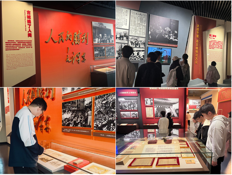 在馆内“中国共产党人的初心和使命”主题墙前,同学们进行集体合影,重温入党誓词,进一步坚定了理想信念。许多同学主动拍摄记录初心墙、渡江精神标语等标志性场景,将红色记忆定格,让精神力量永存。大家纷纷表示,每一件文物、每一段历史,都是一次深刻的思想洗礼,让自己对党的初心使命有了更真切的体悟。